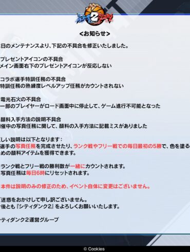 「お知らせ」 本日のメンテナンスで不具合を修正いたしました。 詳細につきましては、画像をご確認ください。 ご迷惑をおかけして申し訳ございませんでした。 今後…